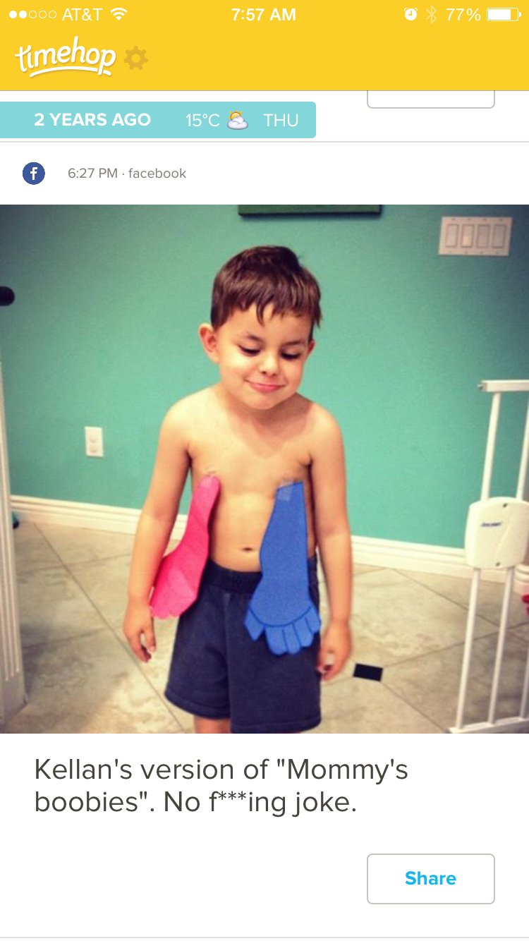This was a full year before I actually GOT boobs. My kids sure do love me. 😒